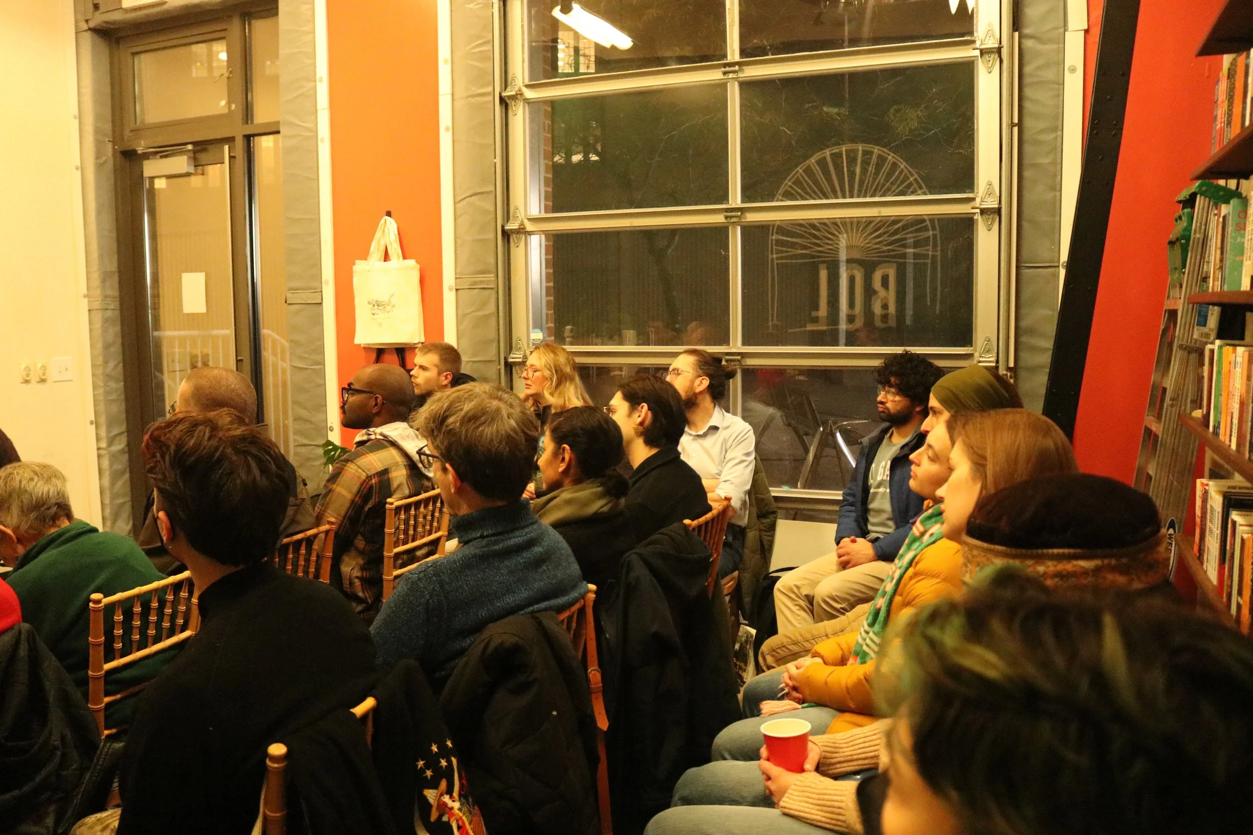 The only other event I'm going to plug here is our launch event from two weeks ago. It was just an incredible party. It was a party not in the sense of just fun, but a party in the sense of gathering community together. We started at 10 am with political readings for kids, kept going with activities like writing letters to the incarcerated in D.C., having book tastings, where people could actually read from our collection and think about what kind of books they might like to see in our collection, ending with comedy, music, and an awesome DJ with good food. Tons of people showed up, which means that there's a longing for more of that kind of sociality. We're hoping to, at least once every three to four months, have a Bol party, and a Bol party will be a real good time. That's what you can expect from those kinds of events. Always show up for those.