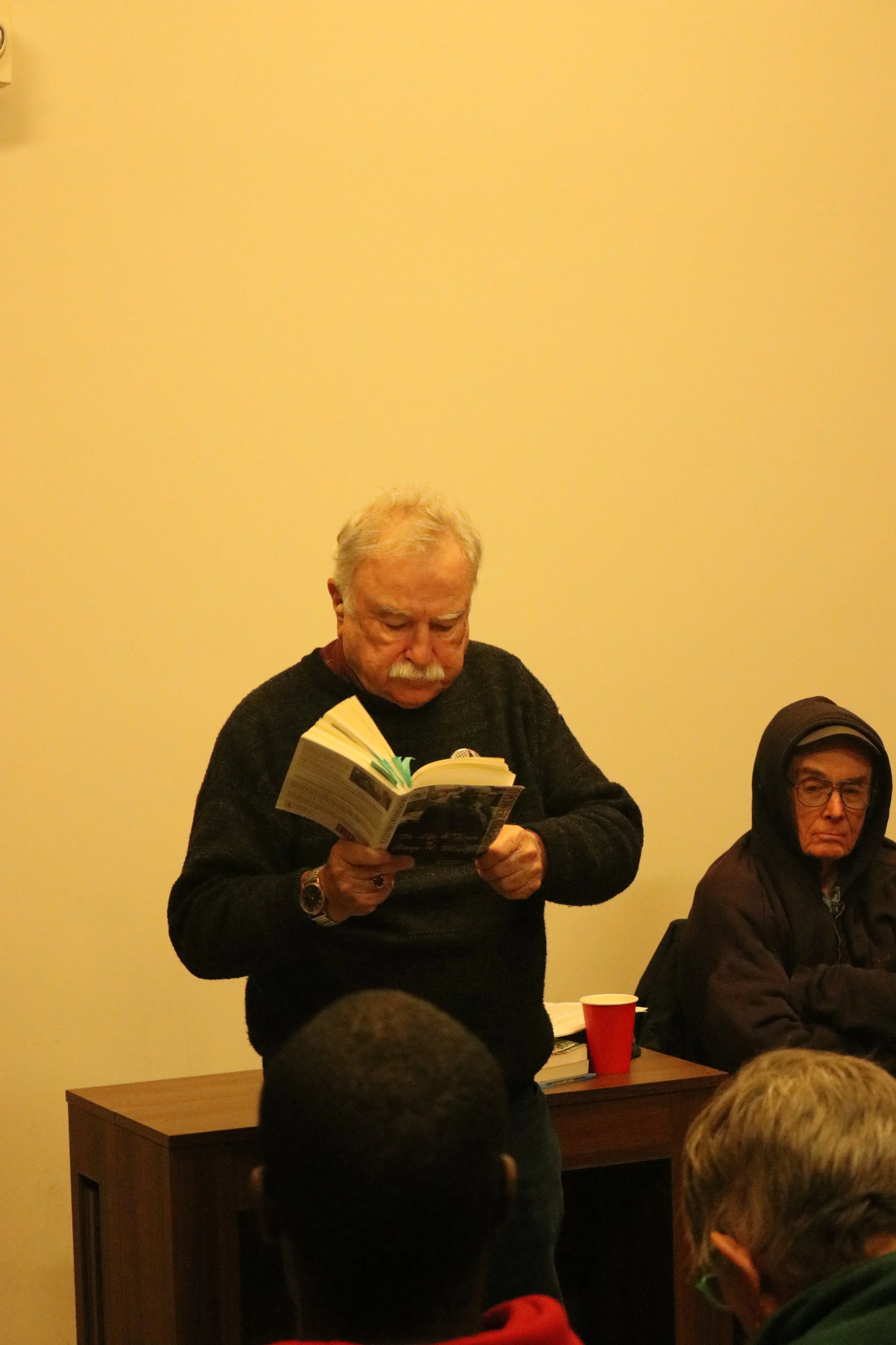 [Photos of Zaineb and author/organizer Tim Wheeler at his book talk - The Life & Times of George A. Meyers. Photos by Harsh]